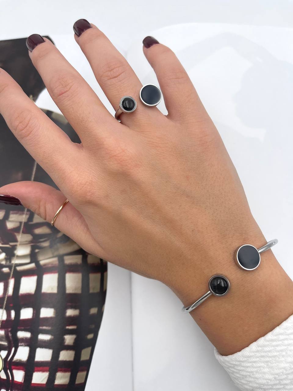 La Combo Alma è la perfetta combinazione delicata ed elegante. Creata con maestria, questo bracciale ed anello aggiungeranno un tocco di raffinatezza al tuo look. I dettagli fine e lusinghieri rendono questi gioielli unici, perfetto per completare il tuo stile con un tocco di classe.