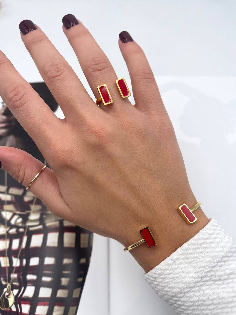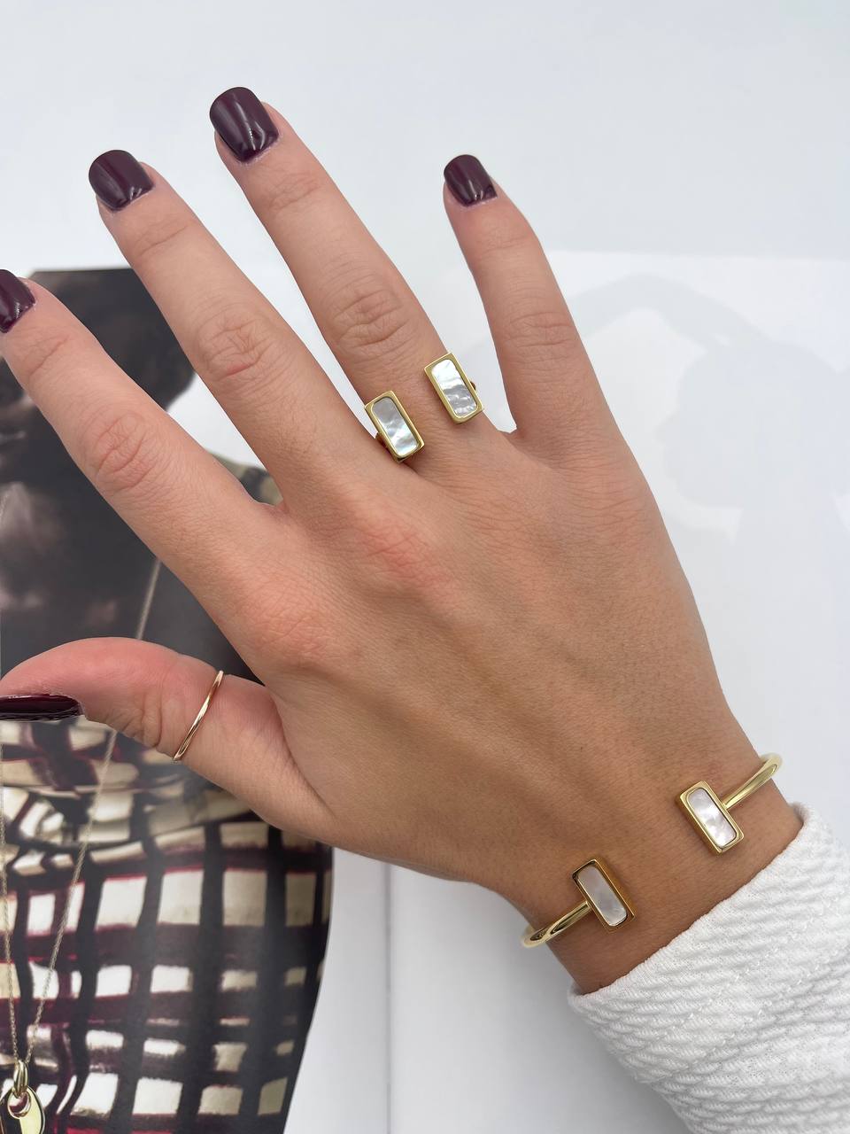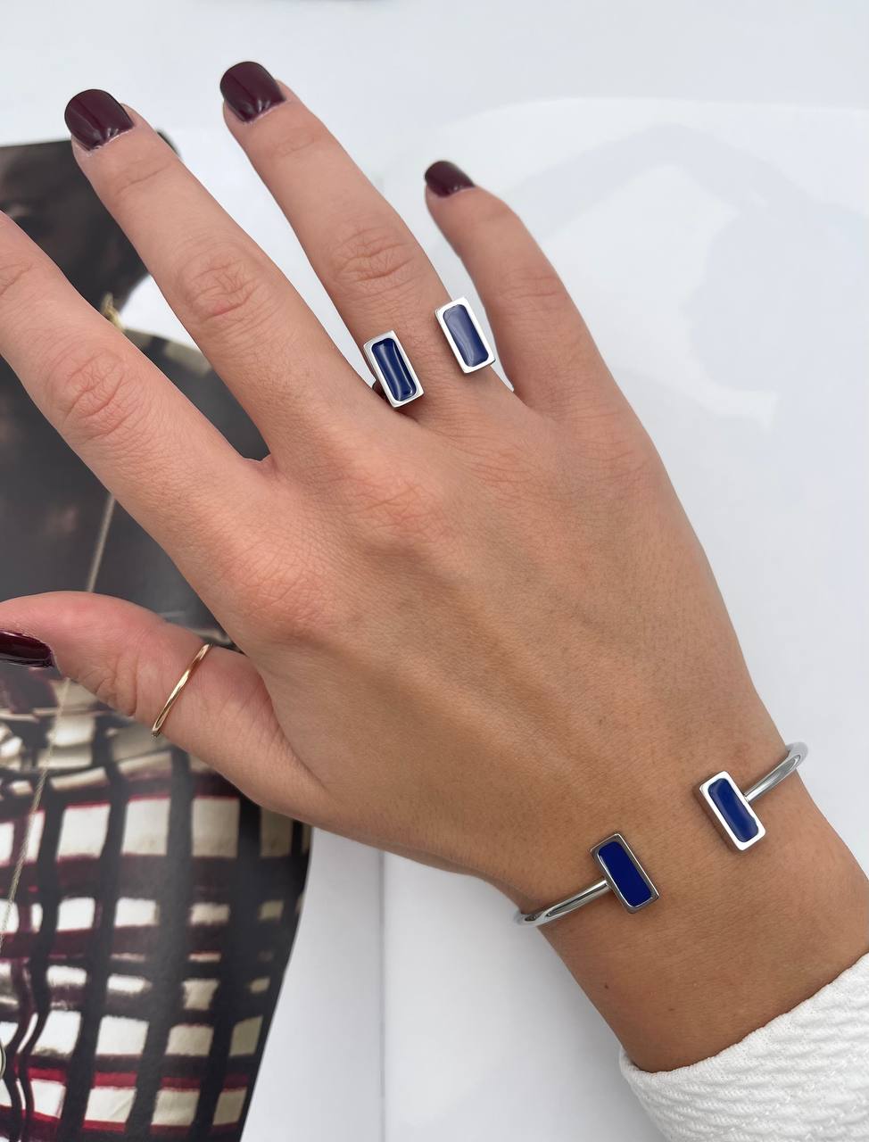 La Combo Saria è la perfetta combinazione delicata ed elegante. Creata con maestria, questo bracciale ed anello aggiungeranno un tocco di raffinatezza al tuo look. I dettagli fine e lusinghieri rendono questi gioielli unici, perfetto per completare il tuo stile con un tocco di classe.