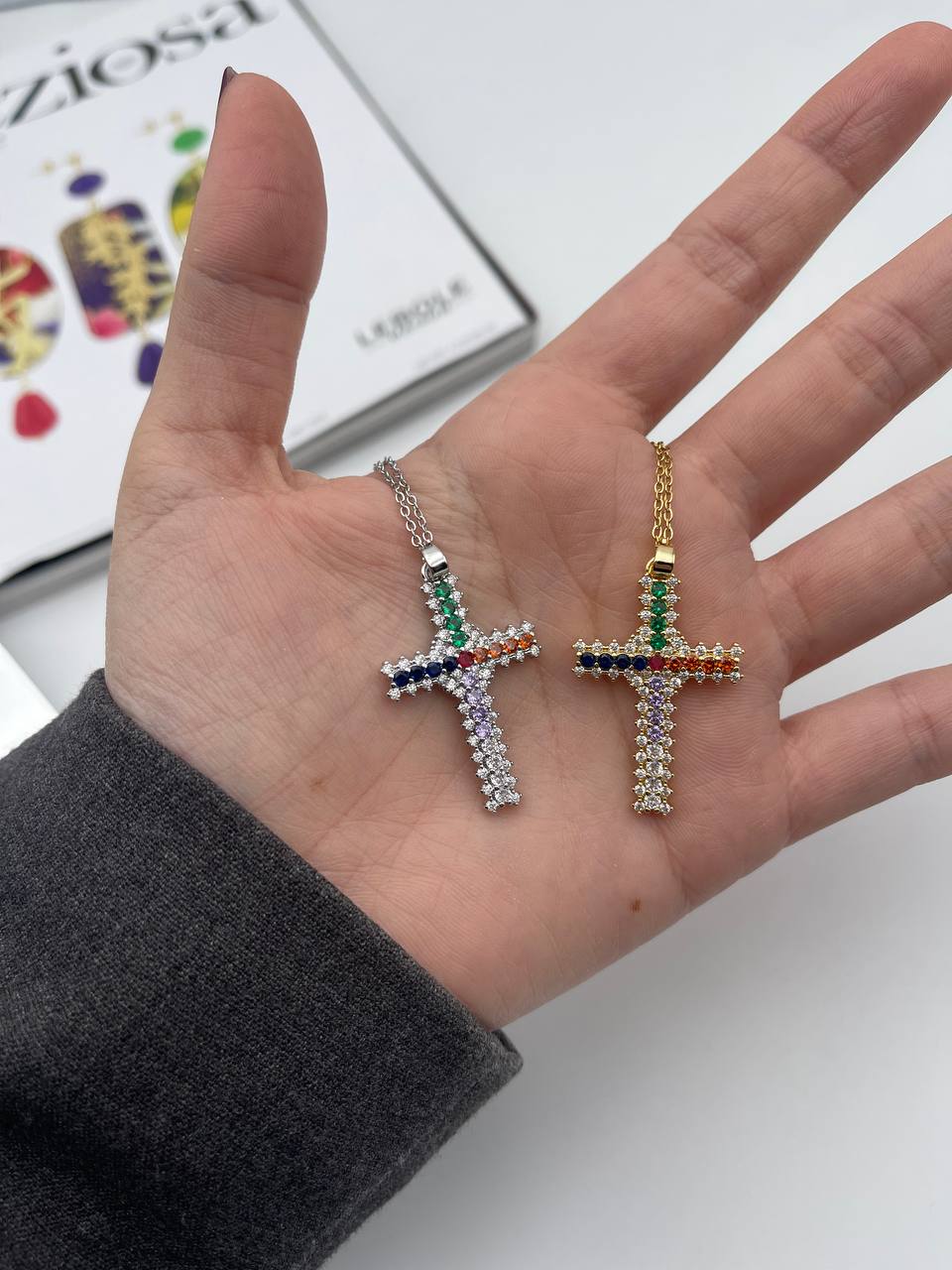 Esprimi il tuo stile con la Croce Dora Rainbow elegante. Questo accessorio unico incanta con i suoi colori vivaci e la sua eleganza senza tempo. Lasciati ammaliare dalla sua bellezza e sottolinea il tuo look con un tocco di lusso e raffinatezza.